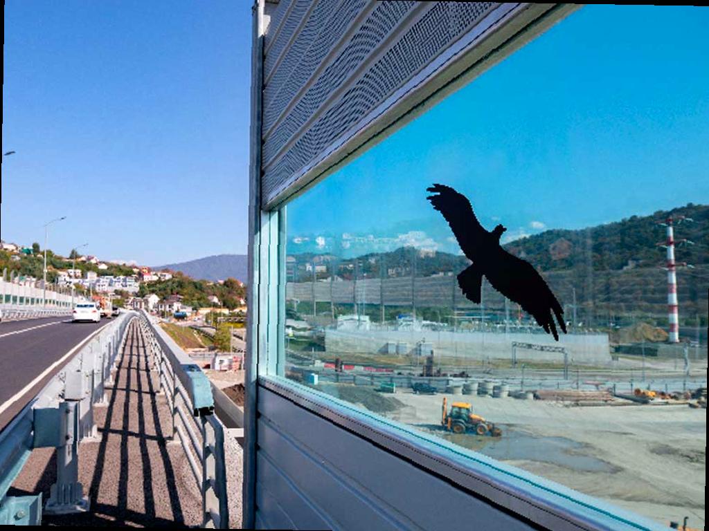 Прозрачные экраны становятся опасными для мелких птиц, которые не видят стекло и могут врезаться в него. Однако, увидев контур ястреба или совы, они отклоняются от опасности. Этот способ уже показал свою эффективность на дорогах в Сочи.