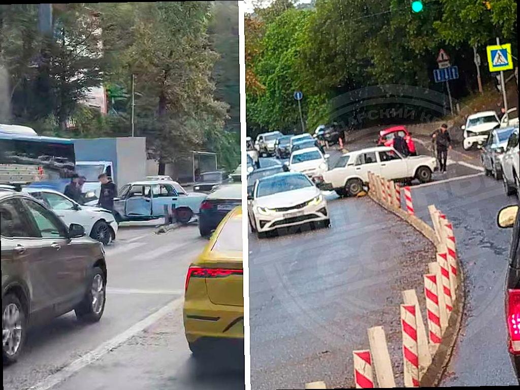 На спуске с Мамайского перевала в сторону Дагомыса произошло дорожно-транспортное происшествие. Два автомобиля столкнулись на выезде со 2-го отделения.