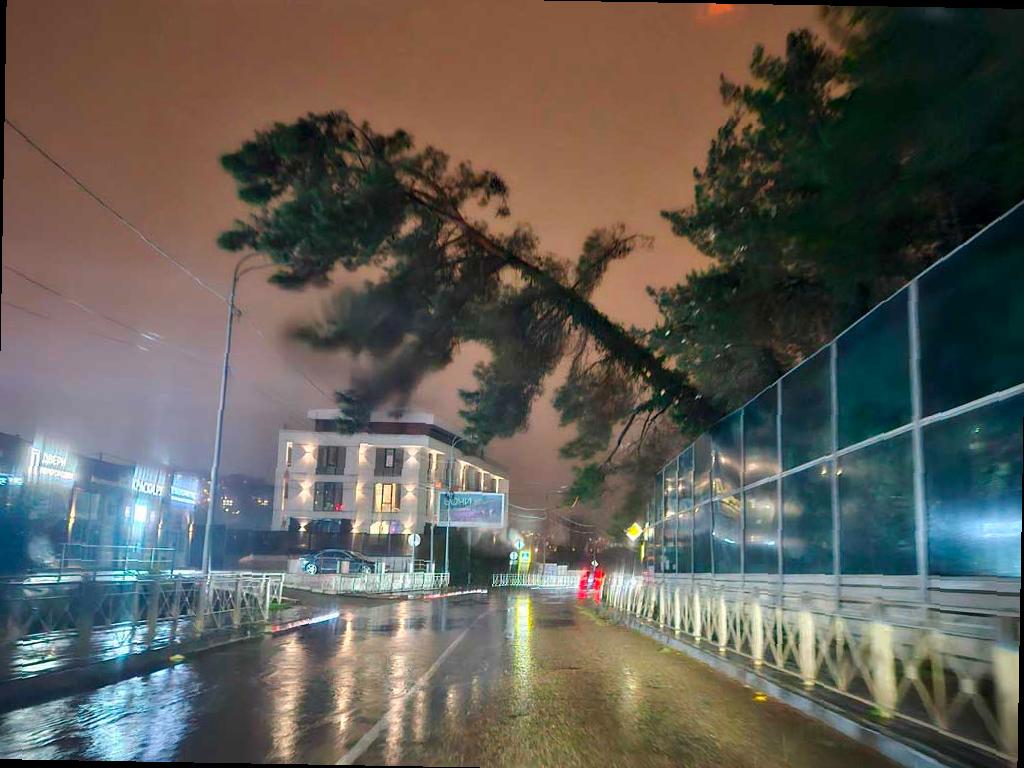 После шторма поступили сообщения о падении деревьев в разных районах города. В нескольких местах автомобили пострадали, а дерево даже проломило крышу шаурмичной. Ремонтные бригады уже работают на местах происшествий.
