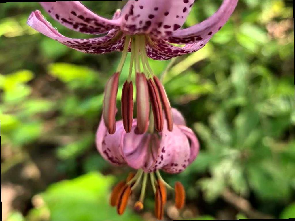 Обычно лилии растут поодиночке и достигают метра в высоту. Их крупные цветки с нежно-розовыми лепестками усыпаны темными пятнышками. Иногда можно увидеть целые группы растений, но обычно их находят по одному на квадратный метр.