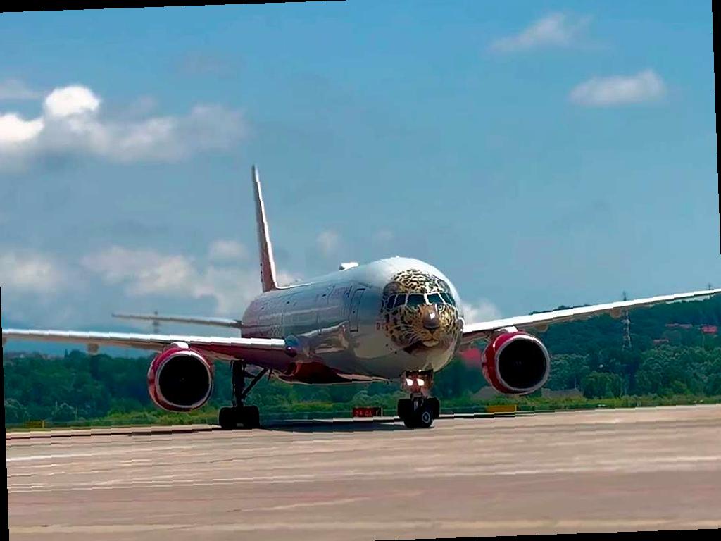 Широкофюзеляжный Boeing 777-300 авиакомпании «Россия» с необычной ливреей, изображающей дальневосточного леопарда, приземлился в аэропорту Сочи. Лайнер был назван «Леолёт».