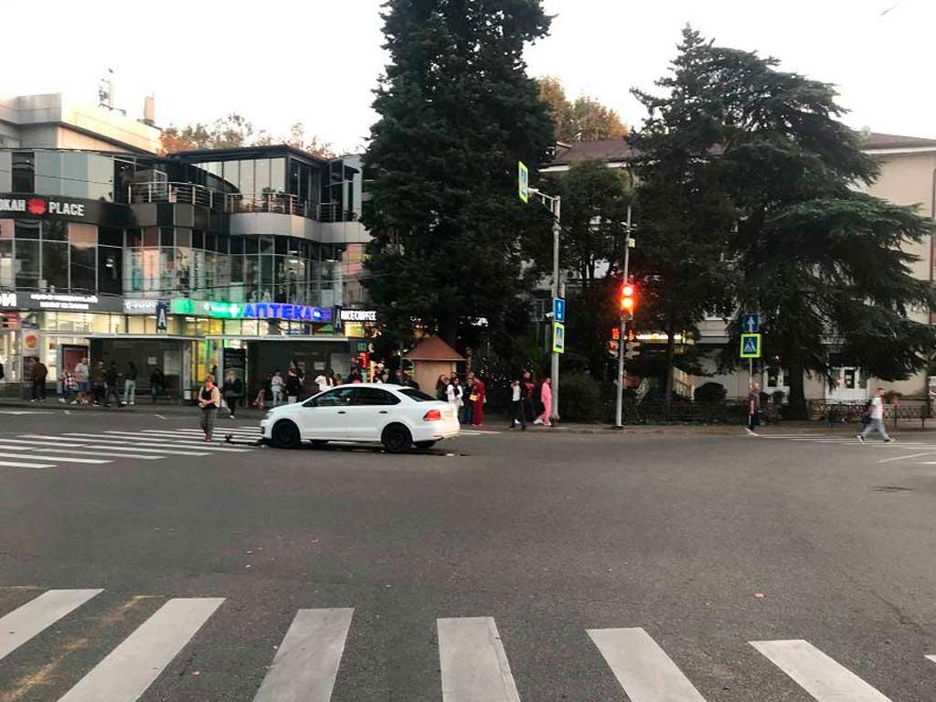 В Центральном районе Сочи легковушка сбила подростка на самокате, который переезжал дорогу на красный свет светофора