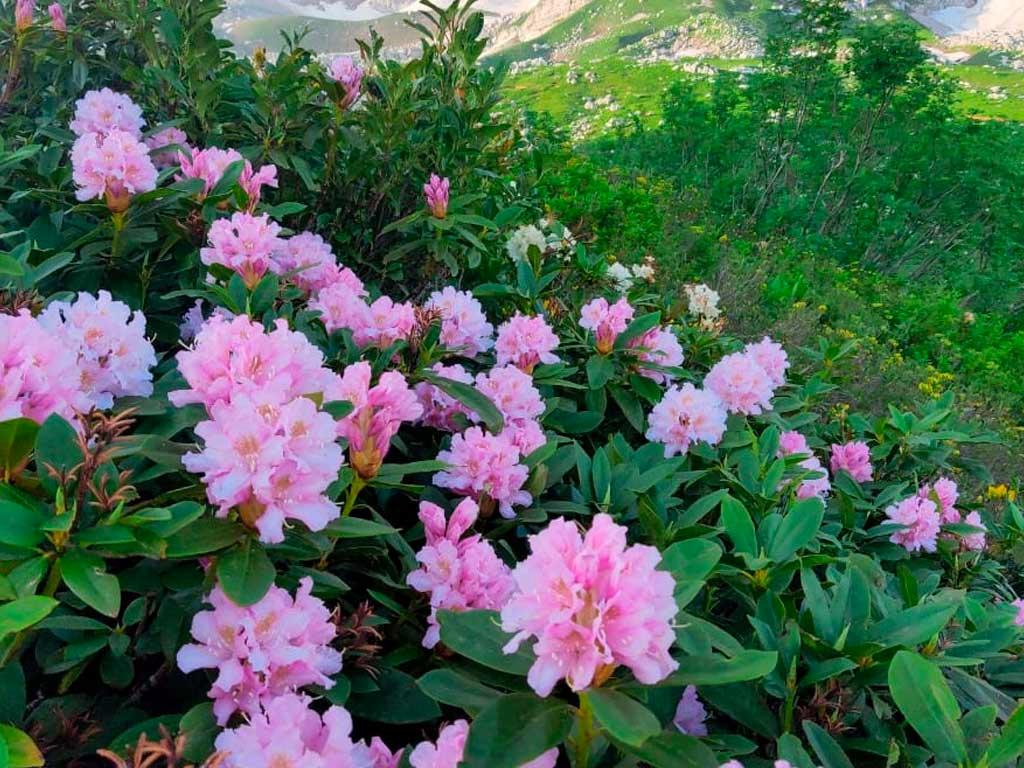 Сейчас в Сочи началось цветение рододендронов, известных как «альпийская роза». Эти красивые цветы можно увидеть на горных склонах и вершинах выше 1000 метров над уровнем моря. Этот период продлится около месяца.