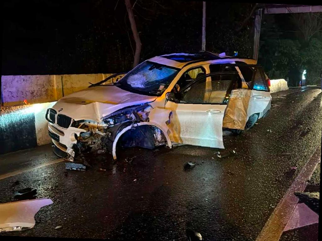 Утром в социальных сетях появились видеозаписи момента аварии. На видео видно, как автомобиль врезается в бетонный блок ограждения и буквально поднимается в воздух. Машина получила серьезные повреждения от удара.