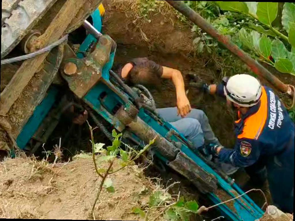 Спасателям из ЮРПСО МЧС и муниципальной службы пришлось применить трос и рычажную лебедку, чтобы поднять экскаватор и освободить проход водителю. Пострадавшего передали медикам скорой помощи.