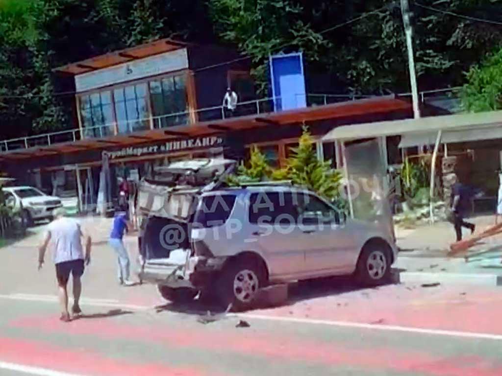 В Сочи произошло ДТП: автомобиль без водителя врезался в остановку