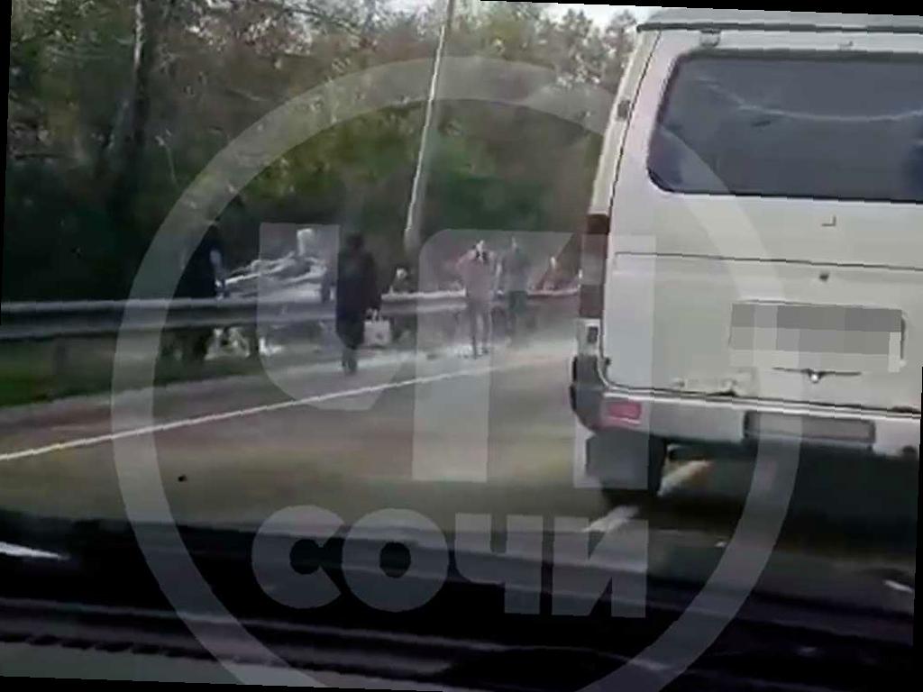 В Сочи произошло серьезное ДТП: внедорожник перевернулся на трассе