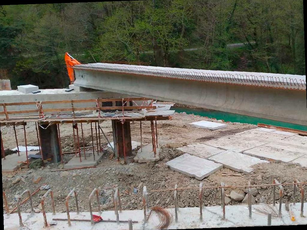 Строительство моста началось в 2024 году после проведения работ по укреплению склона и постройке подпорных стен. Пока действует альтернативный маршрут проезда в нескольких сотнях метров к северу.