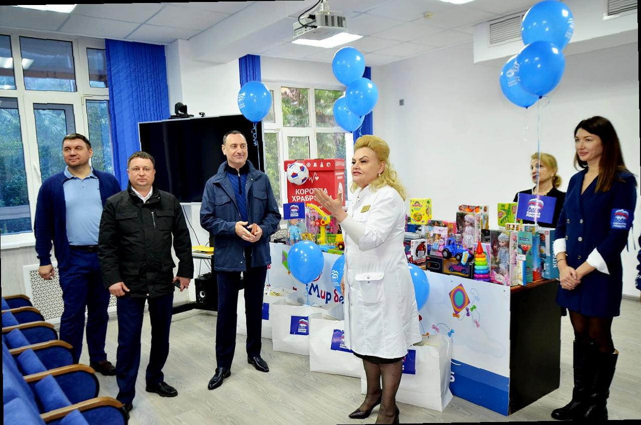 Вместе с Виктором Тепляковым в Сочинскую детскую больницу №9 пришел депутат Городского Собрания Сочи Денис Скрыгин.
