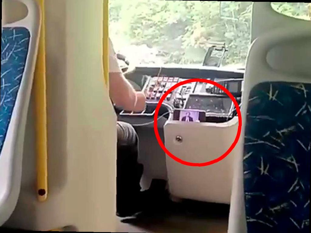 На видеозаписи видно, как водитель смотрит видео на своем телефоне во время управления транспортным средством.